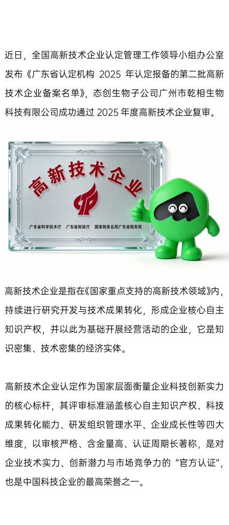 再获国家认证!2025年度高新技术企业复审通过